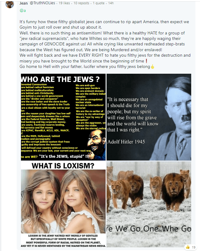 An antisemitic meme found on Gab in 2022. There has been an uptick in antisemitic and anti-law enforcement rhetoric since the Pittsburgh synagogue shooter trial began in April. Security officials have seen an increase in online hateful rhetoric as jury selection in the federal hate crime trial of the Pittsburgh synagogue shooter begins its second week, according to Shawn Brokos, director of community security for the Jewish Federation of Greater Pittsburgh.