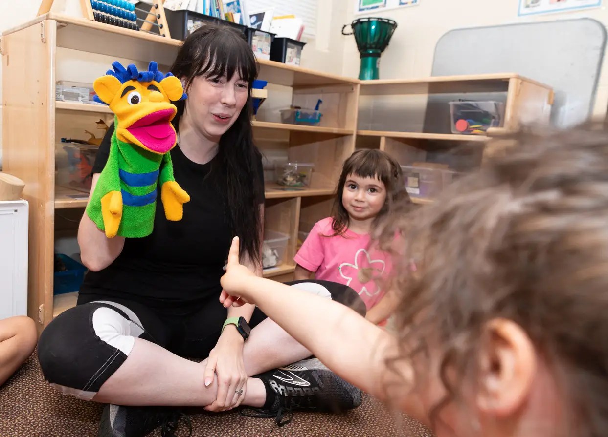 Kate Snyder has found puppets to be an effective way of getting through to young students.