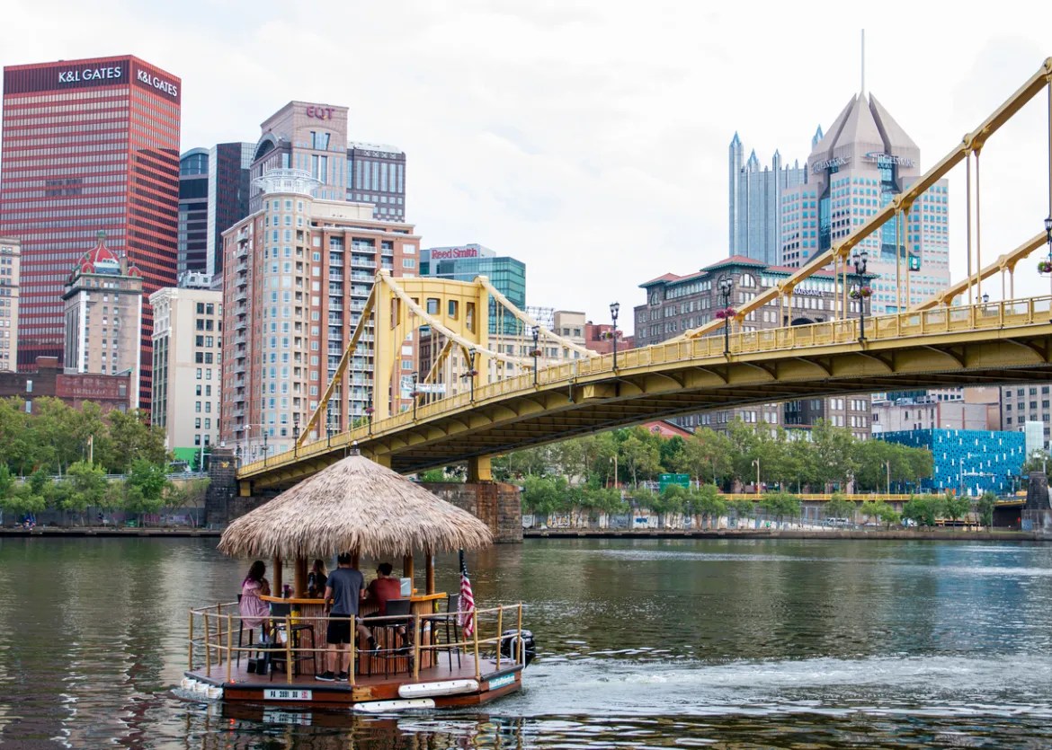 These boats can be rented for a two-hour cruise, and they fit up to six people. The tiki boat cruises offer photo opportunities of the city, including iconic Pittsburgh landmarks. Guests are encouraged to pack their own snacks and drinks to bring on board, as there is no food or drink service available.