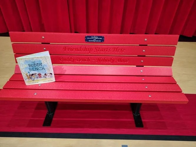The idea for a buddy bench is based on a book of the same name about a place for kids to sit when lonely.
