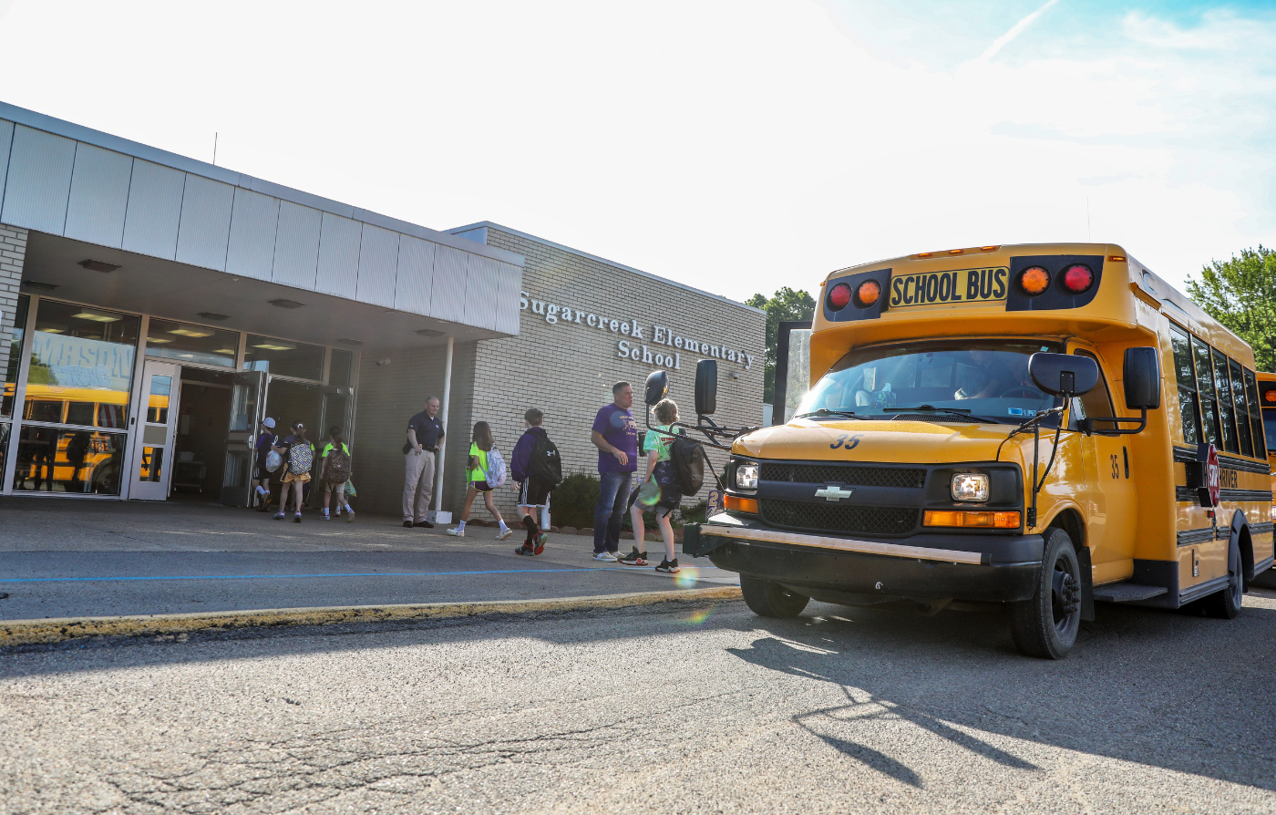 Sugarcreek Elementary School students arrive at school on Friday morning, May 24, 2024. (Morgan Phillips/Butler Eagle)