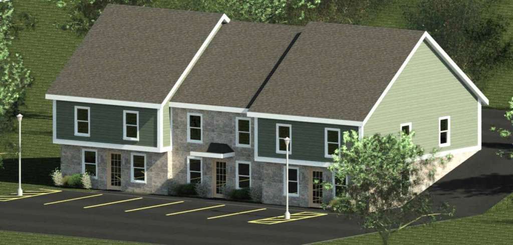 The project by Woodbrook Builders will include three two-bedroom units at the base with three more above. There will be parking at the front and back so that all residents can enter on the ground floor.
