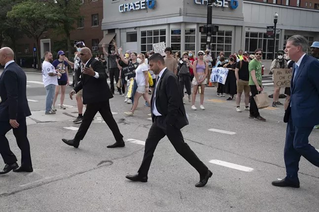 Protesters shout at attendees of the Pittsburgh Energy Innovation Summit. (Photo by Mars Johnson/City Paper)